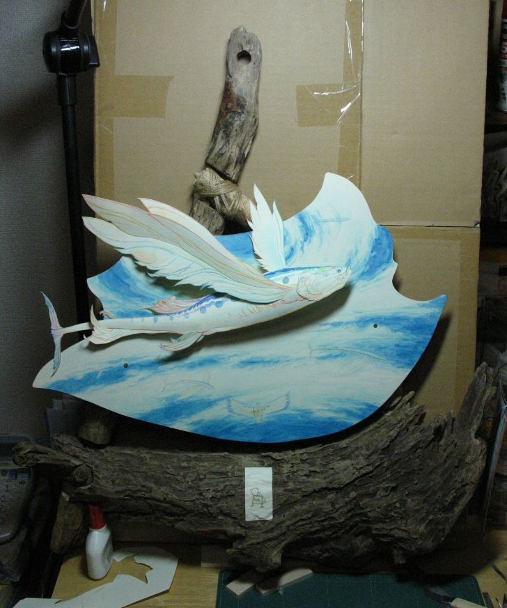 背景ボードはベニア板を切り抜いて美濃和紙を張り込んでいます。