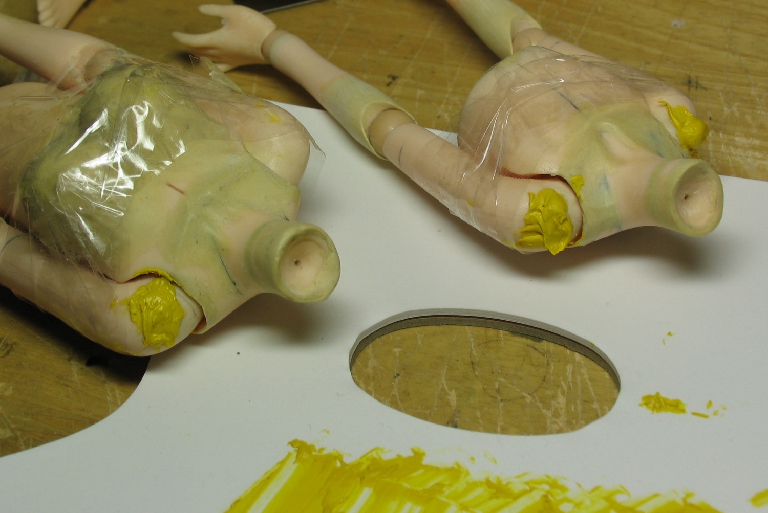 肩のジョイント受け穴を固定するために、