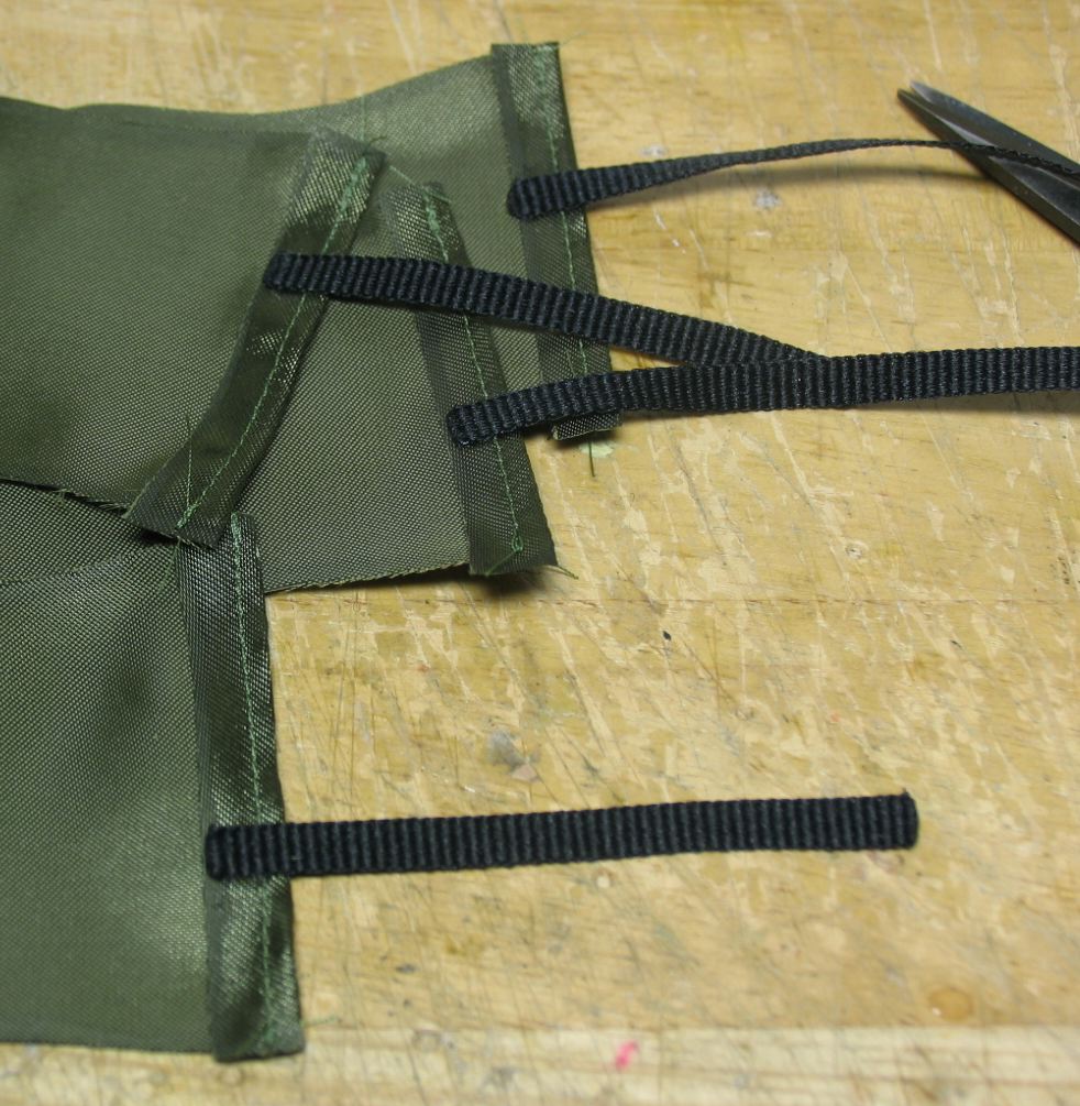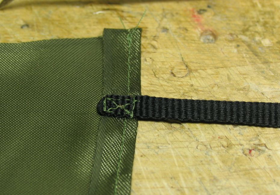 ボトムスのストラップはこんな感じで縫い付けてます。