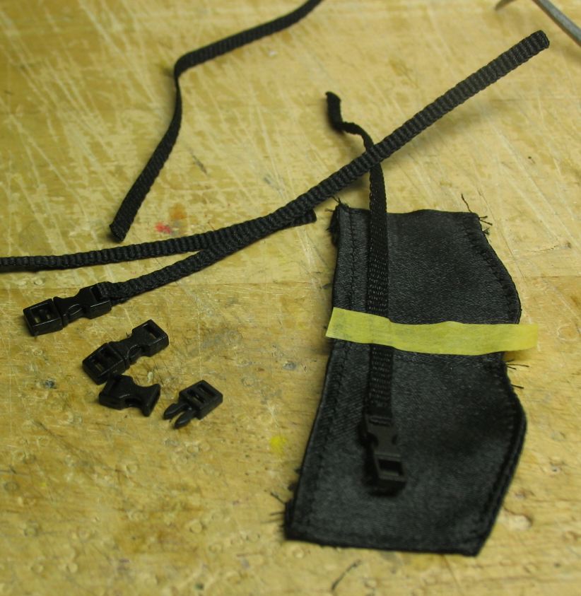 レギンスも同じようにストラップとバックルを縫い付けてます。