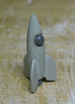 手に持ってるロケットのミニチュアは