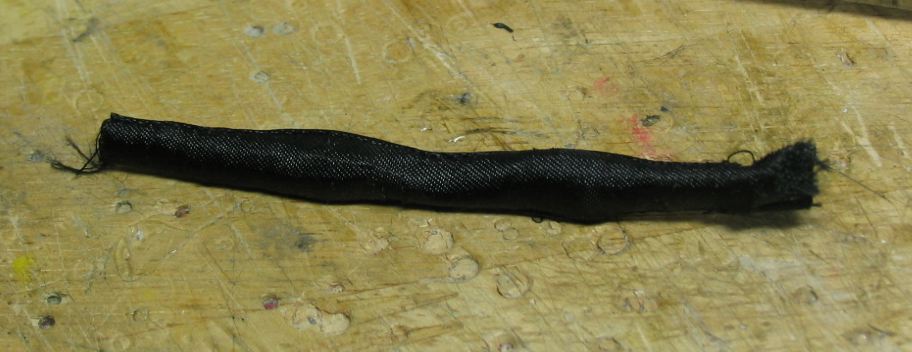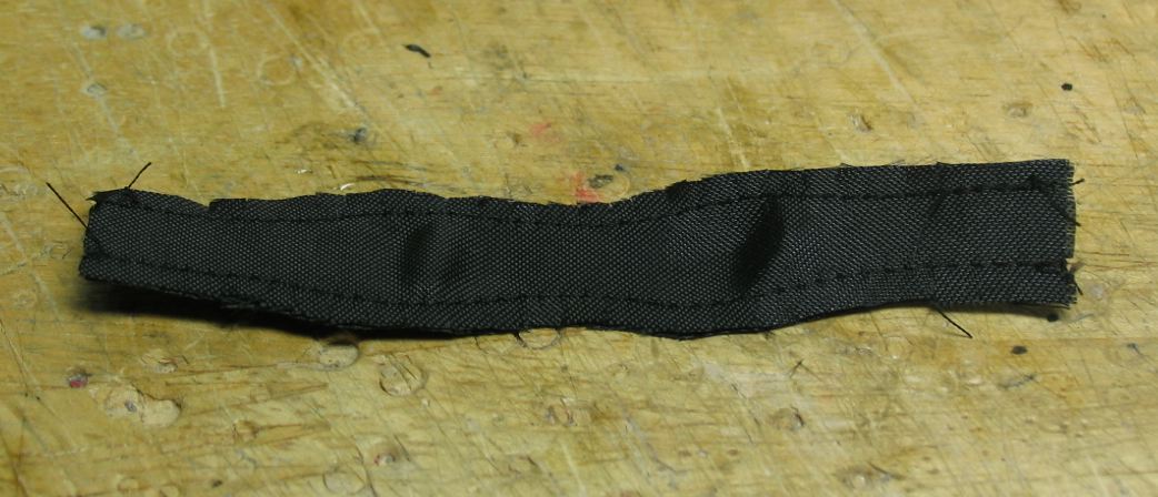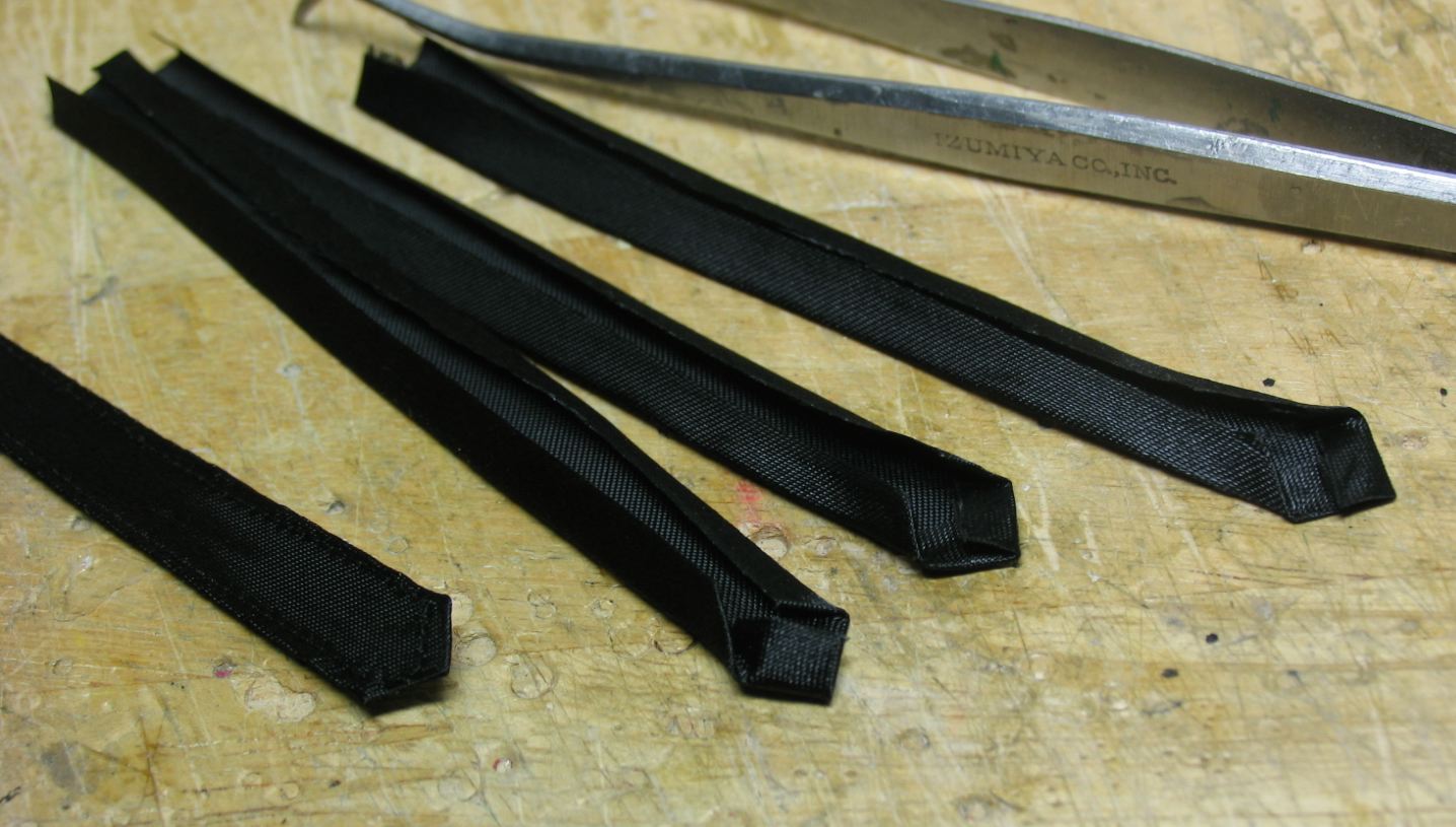生地を折り曲げてアイロン掛けしたリボンを、
