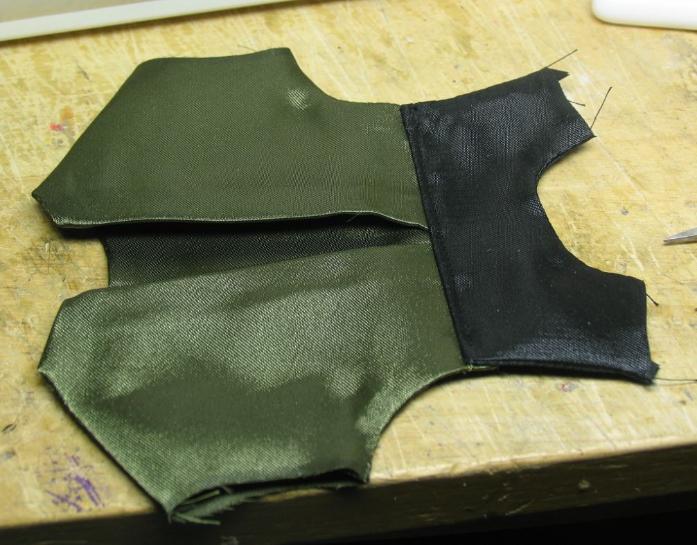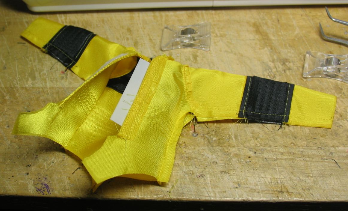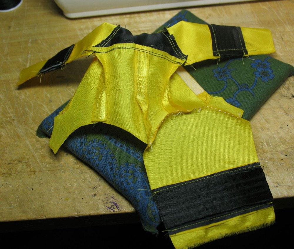脚部分を縫い付けてから前身頃左右と開き止まりを縫った後に