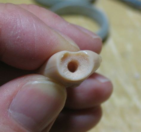 瞬間接着剤を塗布して穴を狭くしてます。