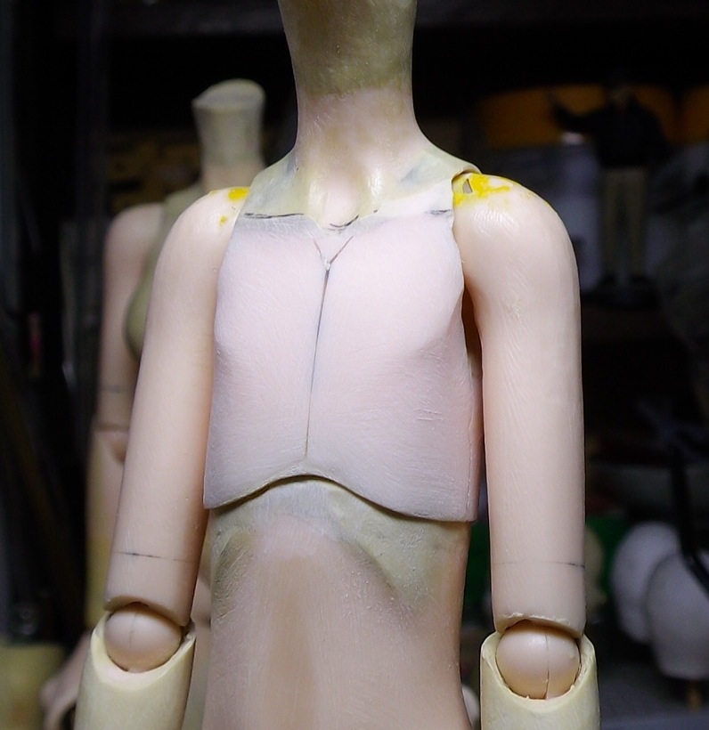 合わせて脇下もさらに削って細くして穴が開いたり…