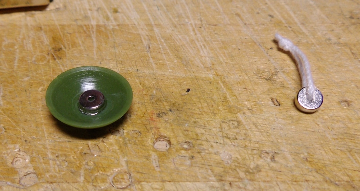 裏にネオジム磁石を接着して布地を挟んで吸着させる事で固定しています。