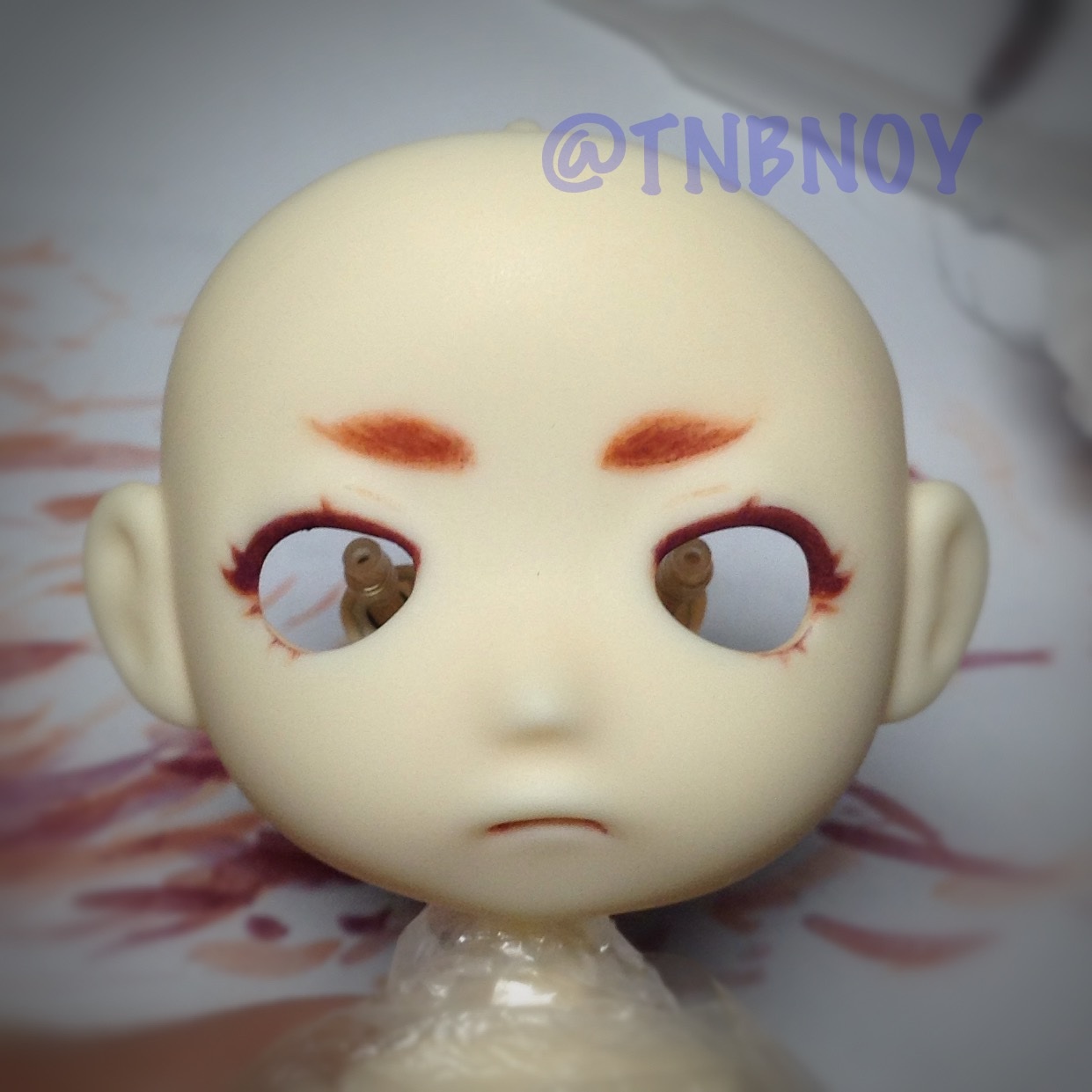 その後に髪留めを塗装してカーマインでスミ入れ。