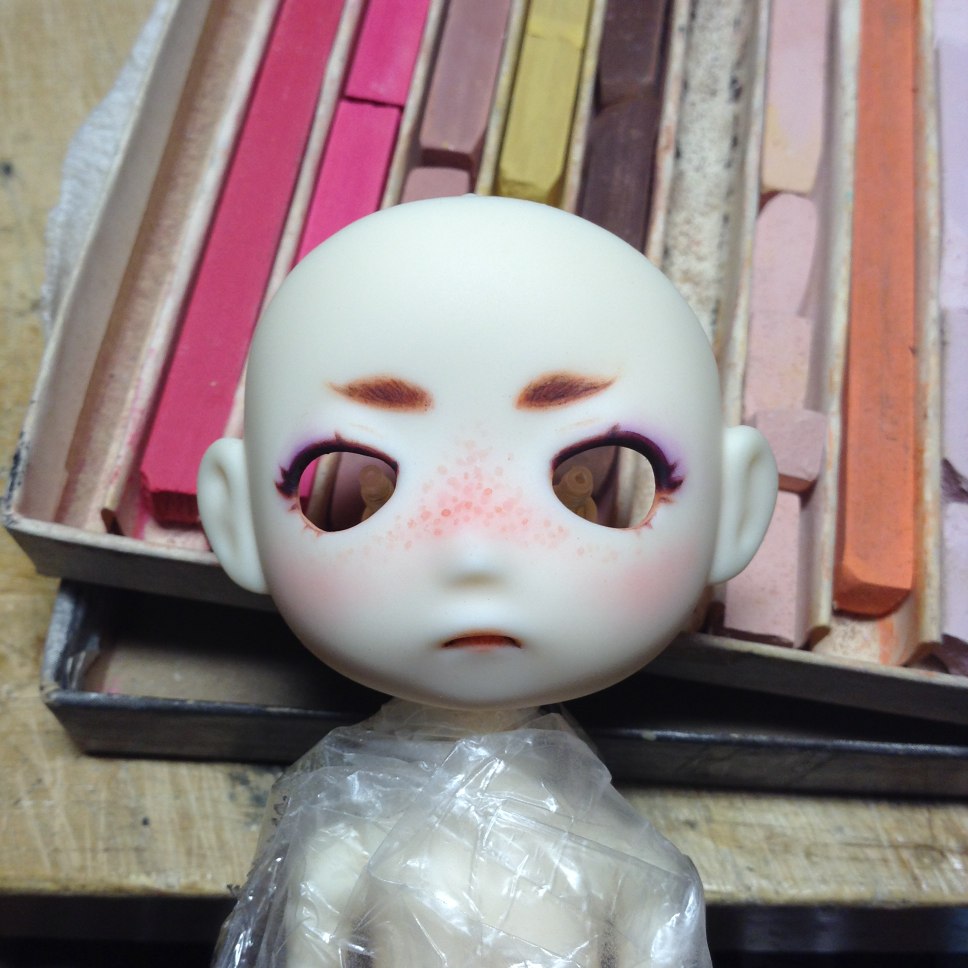 ソバカスは楊子の先に絵の具を少量付けて突つく様に置いています。