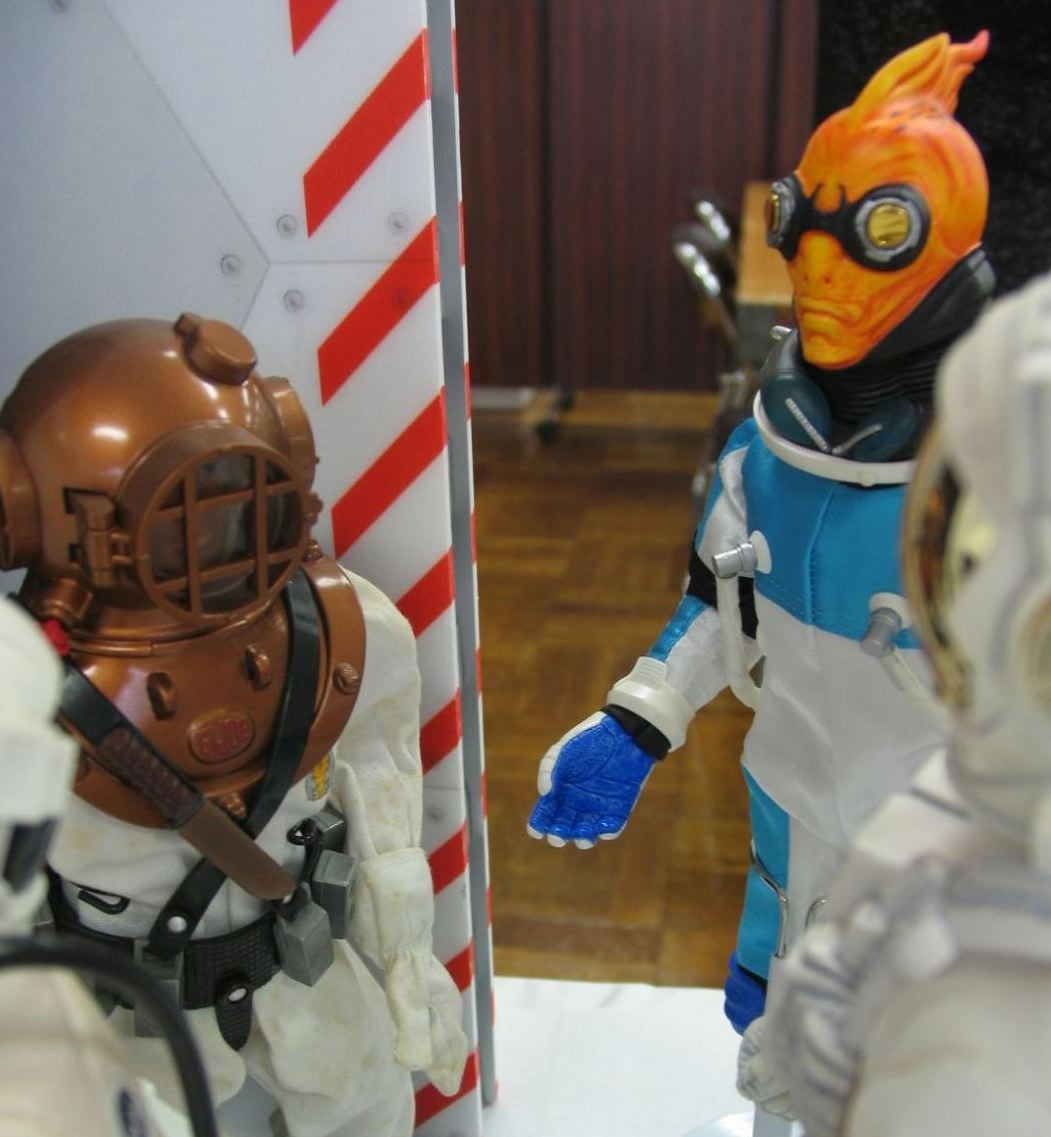 隔壁際でなにやら宇宙飛行士達がたむろってますが、