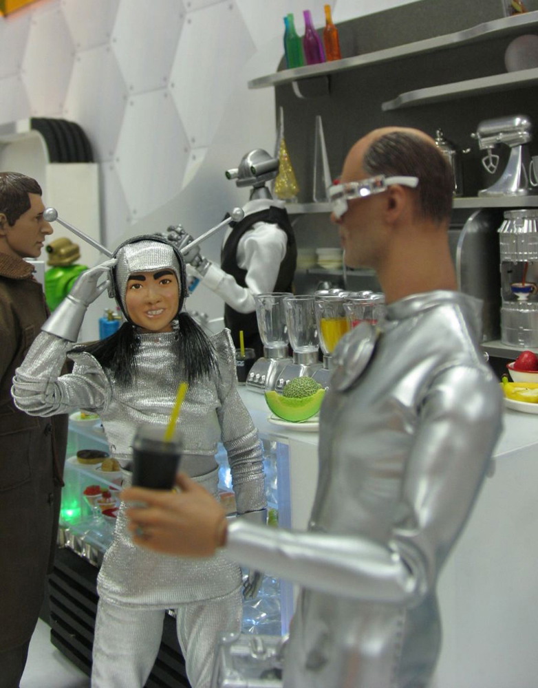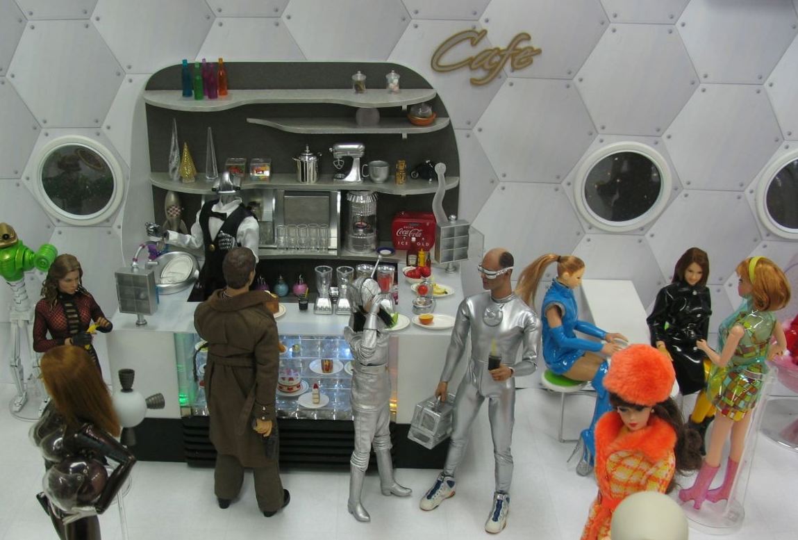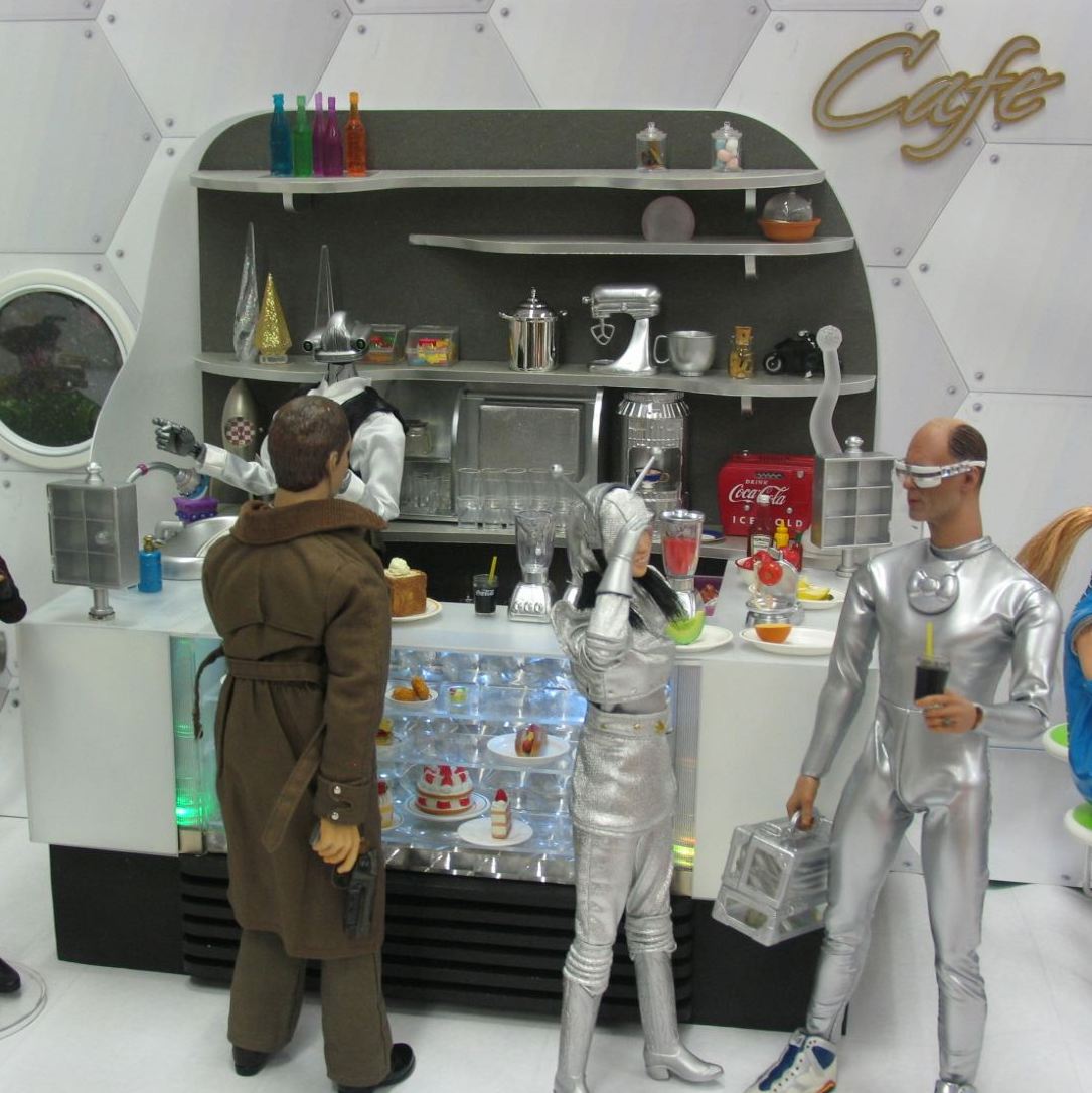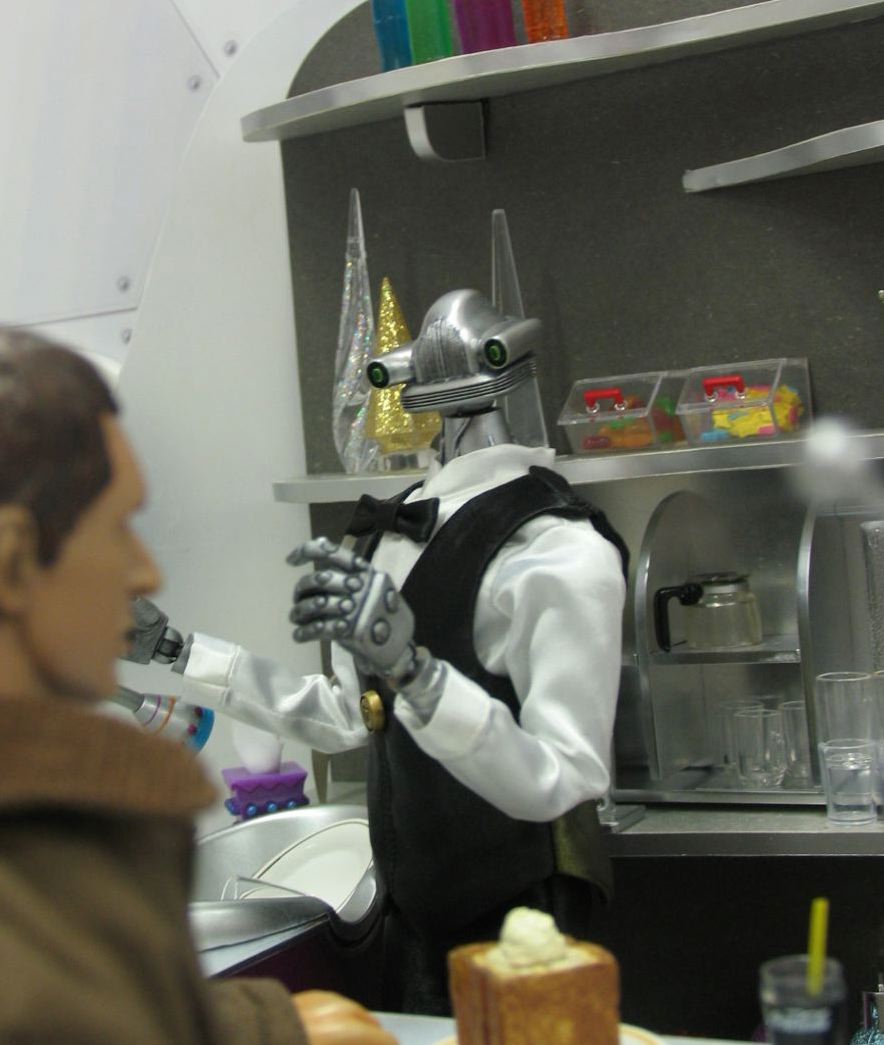 カウンターの中ではロボットのマスターが切り盛り。