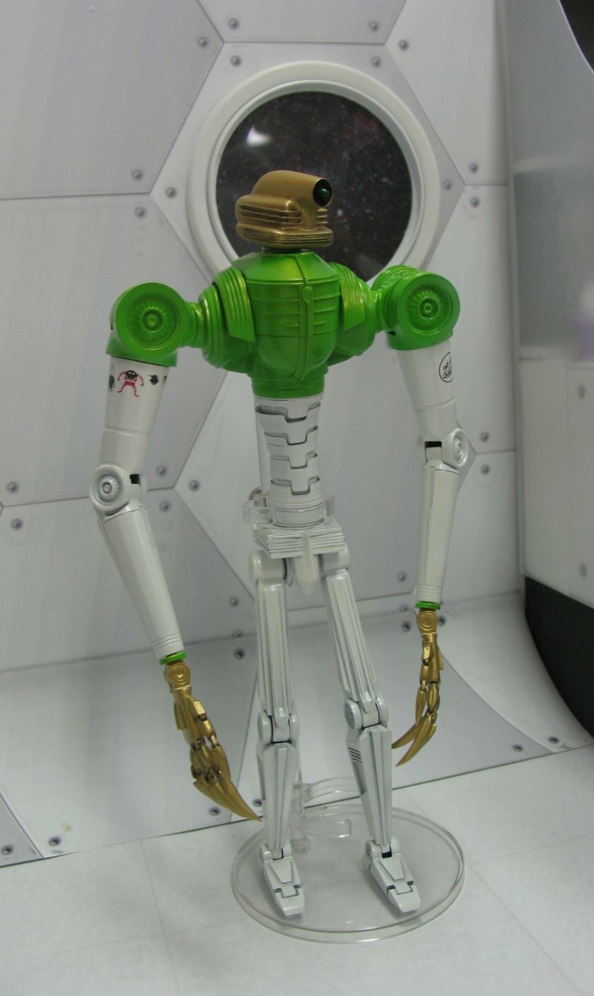 ゲート脇で待機するレトロロボット。