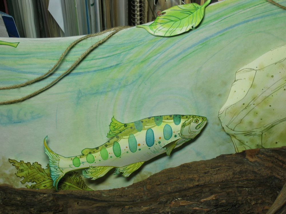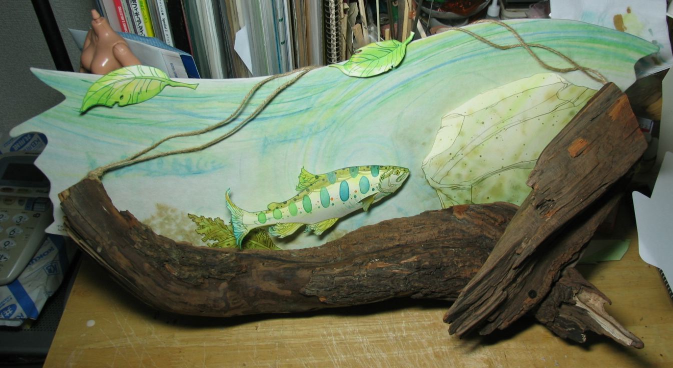 背景ボードはベニア板を切り抜いて美濃和紙を張り込んでいます。