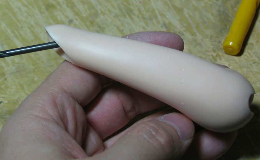 体軸に対して斜めに穴を開けます。
