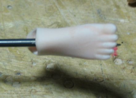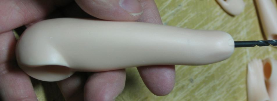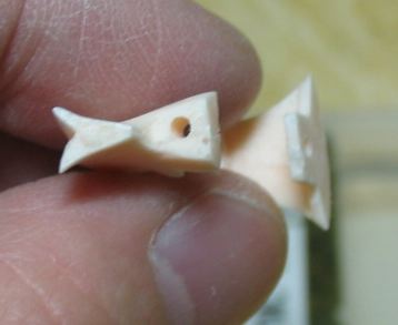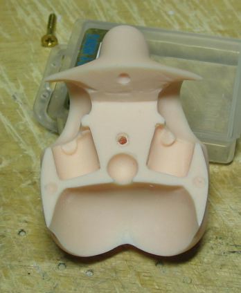 股間パーツにもネジを通す穴を2カ所に空けます。