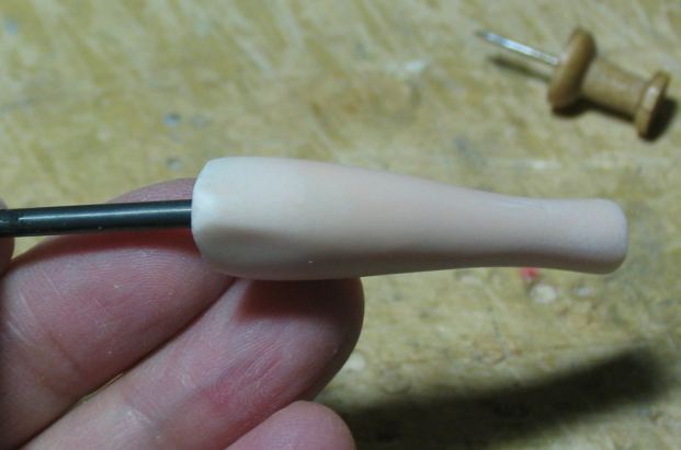 彫刻刀の丸刀を使って穴を広げました。