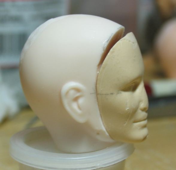 自作レジンヘッドの顔面を削りこんで