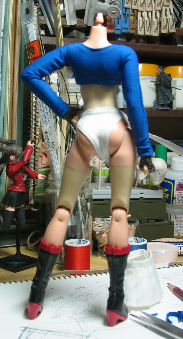 スーパーガール用の衣装の縫製ですよ〜。