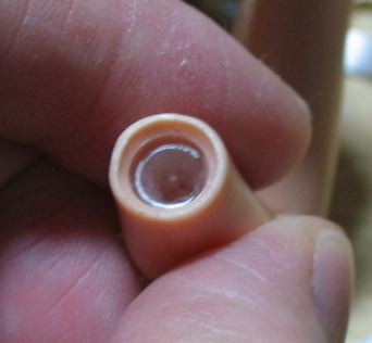 瞬間接着剤を塗布して穴を狭くしてます。