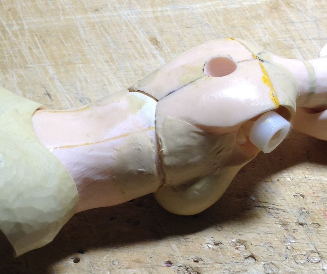 結局、肩の根元のジョイント下端を削ってスペースを作りました。